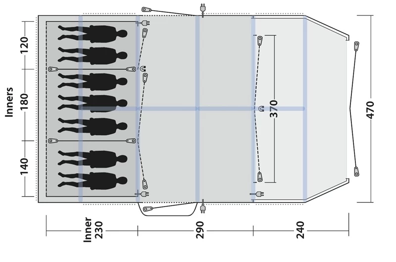 - Reliable, easy-to-operate inflate/deflate valves conveniently placed outside the flysheet