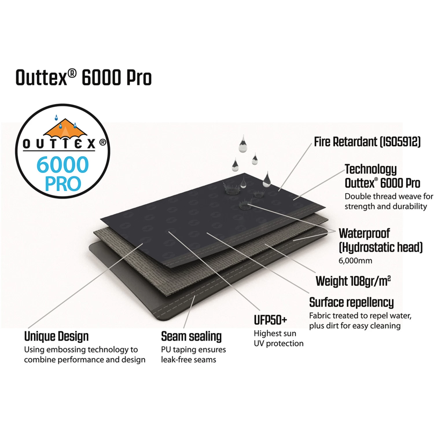 | Outer tent material | Outtex® 6000 Pro, 100% Polyester |