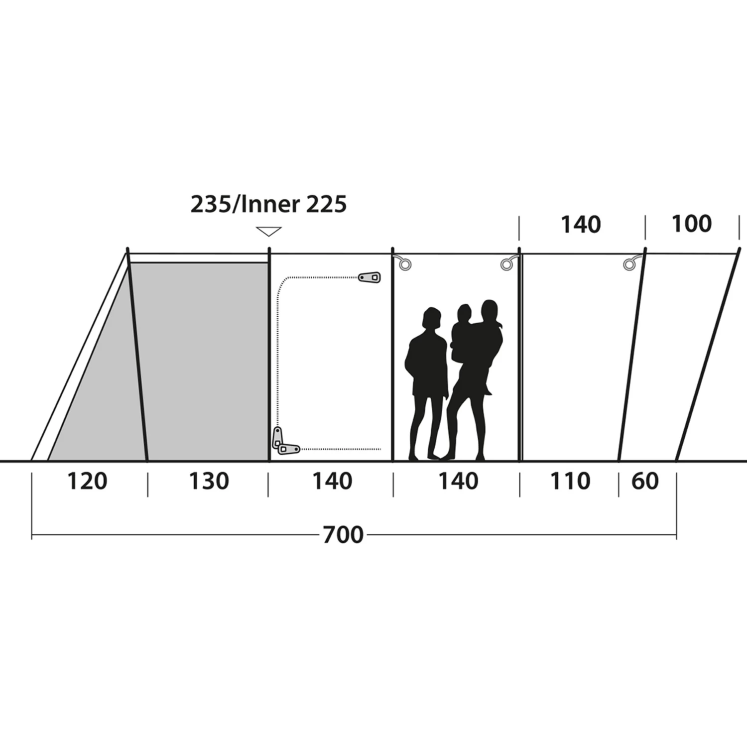 | Type of tent structure | Coupled inner and outer tent |